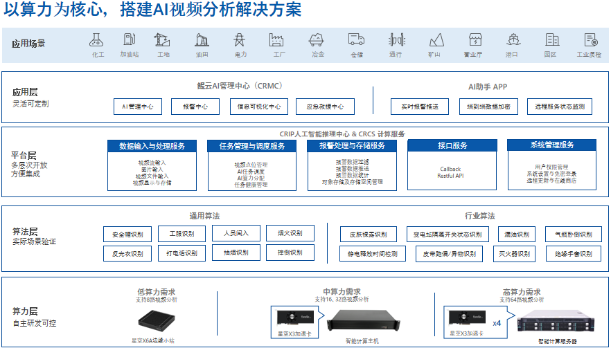作為一種高效的應(yīng)用系統(tǒng),視頻行為分析管理系統(tǒng)在安全生產(chǎn)和安防領(lǐng)域中的應(yīng)用越來越廣泛。但是想要完美的發(fā)揮出視頻行為分析管理系統(tǒng)的作用,需要考慮到系統(tǒng)整體的通用性和易用性和高算力性價比。企業(yè)智能化安全生產(chǎn)由多種智能化系統(tǒng)組成,而企業(yè)應(yīng)用視頻行為分析管理系統(tǒng)需要較強的技術(shù)支持,所以企業(yè)通常在智能化升級時,集成商扮演著極其重要的角色,需要將視頻行為分析管理系統(tǒng)和各大系統(tǒng)集成完整的安全生產(chǎn)信息化管理平臺,在安裝和調(diào)試該系統(tǒng)時,集成商需要充分考慮現(xiàn)場環(huán)境和實際需求,并提供全方位的技術(shù)和服務(wù)支持。一方面,集成商需要選擇合適的硬件設(shè)備,確保視頻的流暢傳輸和存儲;另一方面,還需要針對不同的應(yīng)用場景和監(jiān)測區(qū)域,進行優(yōu)化設(shè)置和算法調(diào)試,以保證分析精度和穩(wěn)定性。