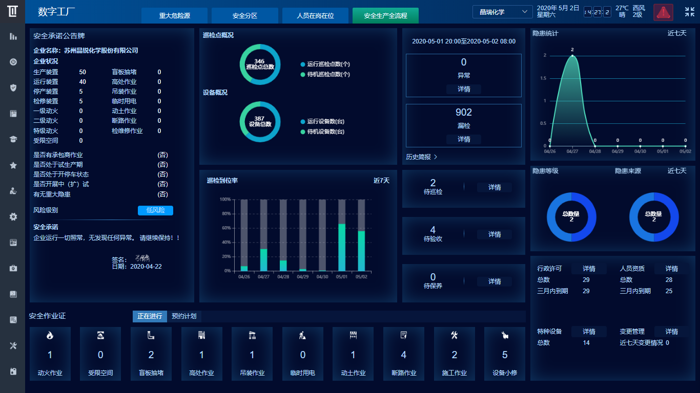 化工安全管理平臺是專門為化工行業設計開發的安全生產系統,它通過集成各類安全管理模塊,為企業提供全方位的安全防護和風險控制。化工行業是一個高風險的行業,涉及到許多危險品和復雜的工藝過程。提高安全生產管理水平,是每一個化工企業亟待解決的重要問課題?;ぐ踩芾砥脚_的出現,為化工企業帶來了全新的解決方案。
