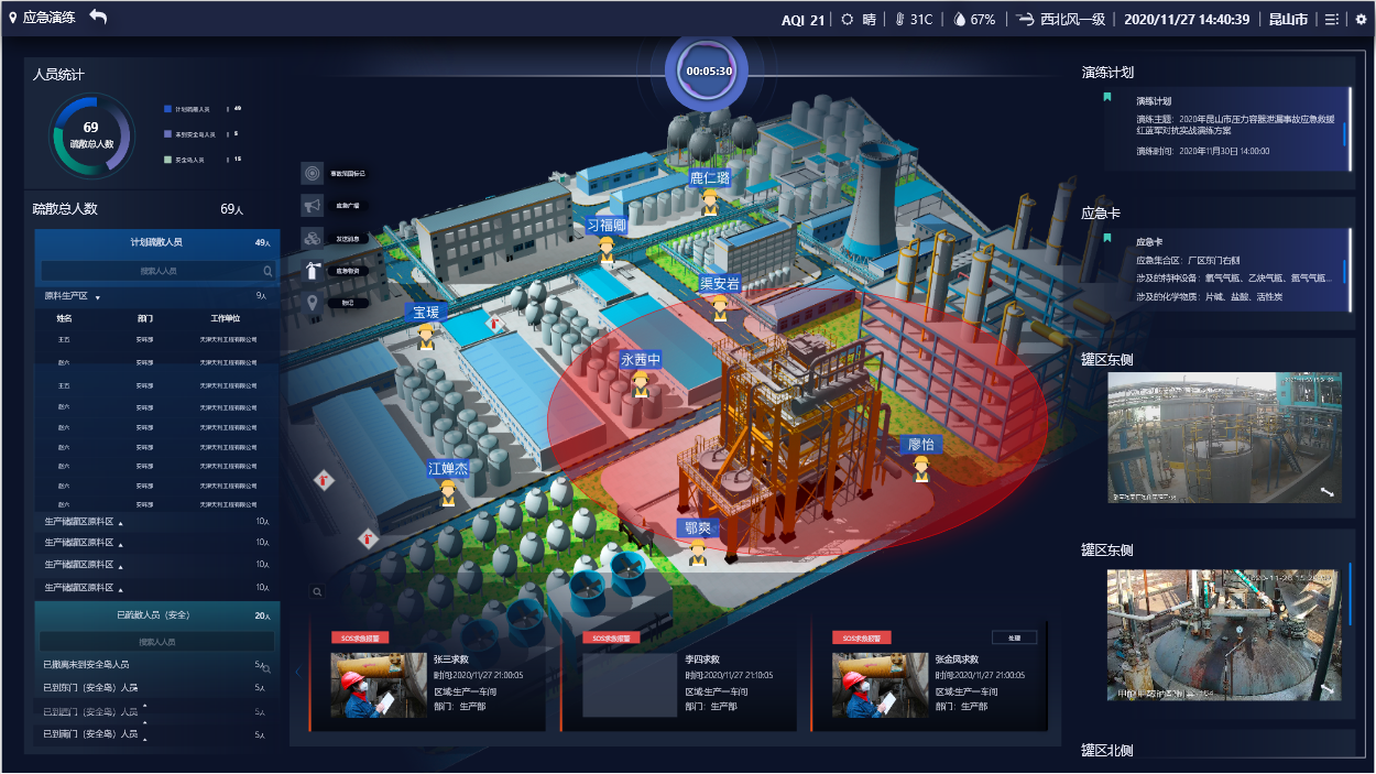 圍繞“安全生產標準化管理”體系建設,利用人工智能技術、GIS技術、人員定位、物聯網監測、視頻聯動等技術,構建風險分級管控與隱患排查治理雙重預防體系,提供重大危險源監測預警、企業安全風險分區管理、企業生產流程管理、人員在崗在位管理等功能,從感知層、數據層、平臺層全面覆蓋工業企業安全生產相關業務,提高企業安全生產管理水平。