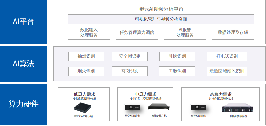 智慧工廠的引入使生產(chǎn)過程更加智能高效,華東某鋼鐵集團(tuán)為加快推進(jìn)智能化改造、數(shù)字化轉(zhuǎn)型,鯤云科技為其搭建智能視頻分析平臺,接入廠區(qū)原有的1000+路攝像機(jī),增加AI視頻分析功能,采用安全帽檢測、煙霧火焰識別、人員聚集識別、路口闖紅燈識別等算法,報(bào)警結(jié)果通過實(shí)時(shí)語音提醒,構(gòu)建風(fēng)險(xiǎn)快速響應(yīng)機(jī)制,并自動留存相關(guān)圖像資料,加強(qiáng)安全管理人員的工作效率,滿足智能化建設(shè)要求。