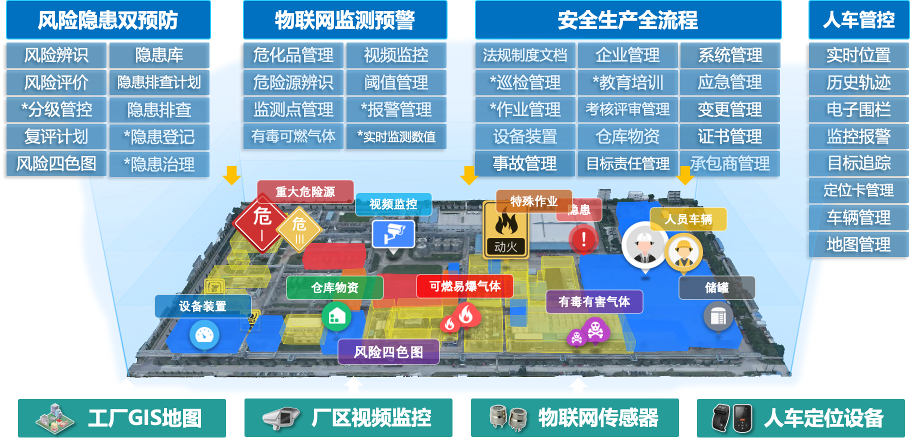 雙方精誠合作,為客戶提供以地理信息系統為基礎的園區封閉管理系統,涵蓋視頻監控、人/車管控、危險源管理等模塊,打破傳統園區管理方式,進一步加強了企業園區管理的規范化、科學化,有效提升了安全管理人員的日常工作效率。